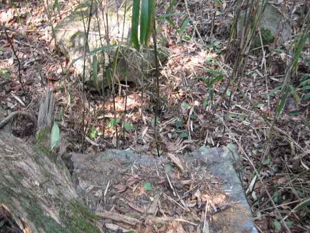 その先はまた拓けていました 人工的な石が並べてあります ここも井戸だったのかな?礎石?