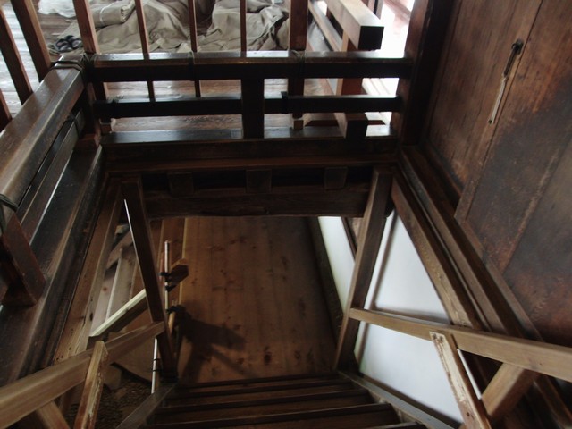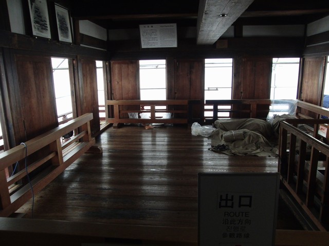 月見櫓内部です 周囲に養生シートが張られているので真っ白です